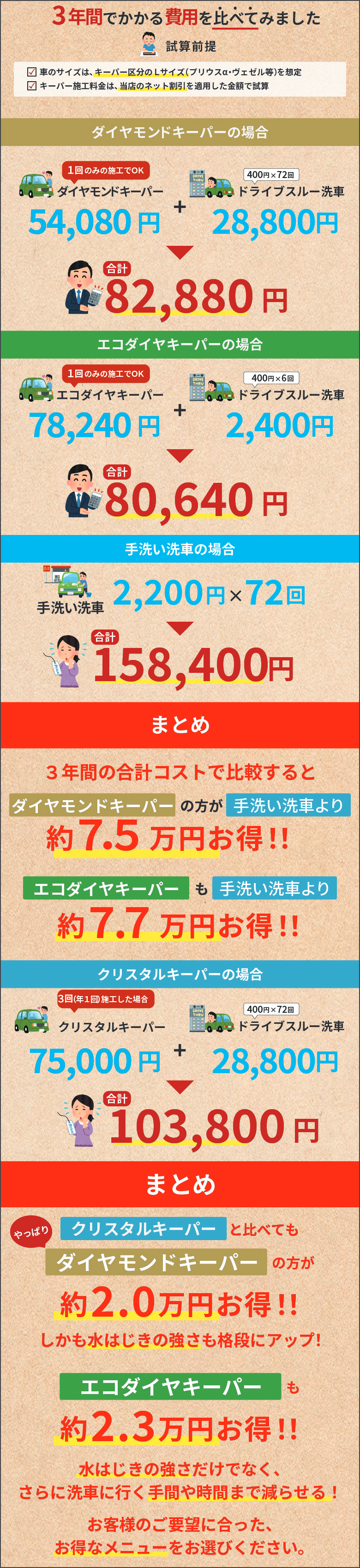 カーディーラーや車販売店のコーティング料金より断然お得!