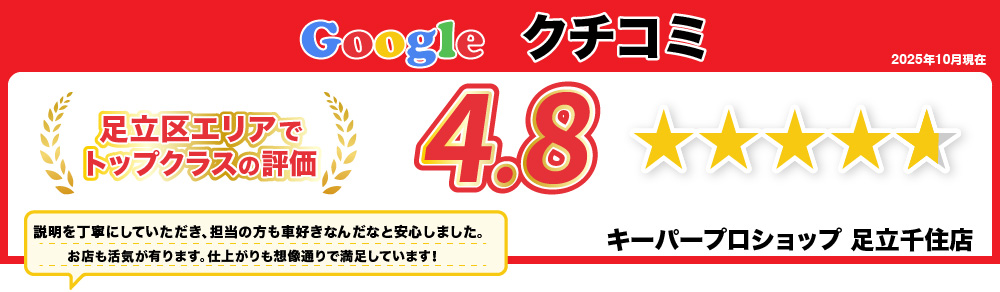 私達キーパープロショップは、足立・葛飾・江東・荒川・墨田・台東・草加市・八潮市・松戸市エリアのカーコーティング専門店として、日本ダントツのカーコーティングブランド、キーパーの正規代理店として認定を受けております!